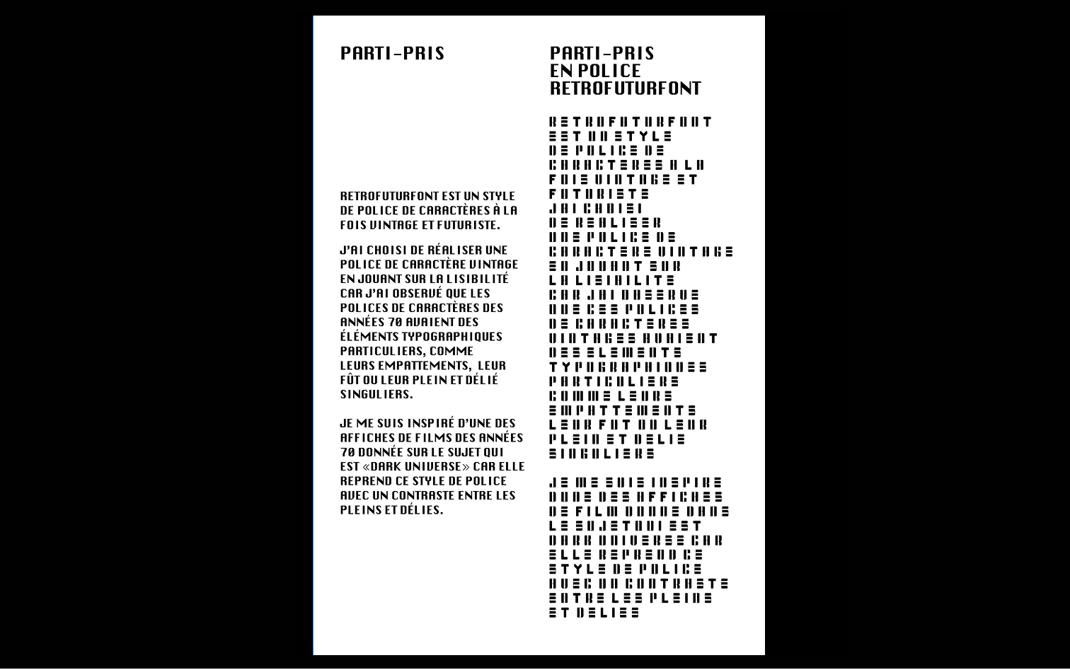 ➦ Parti-pris du projet en police de caractères "Retrofutur font"