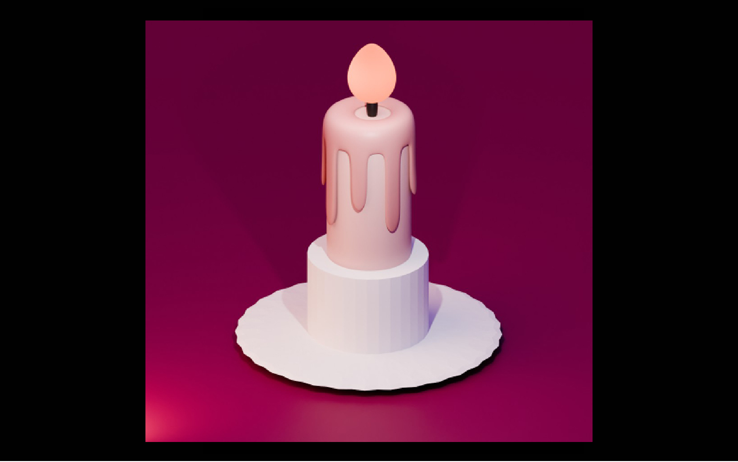Reproduction et modélisation d'une bougie colorée ; travail du rendering, de la fonction du "Bevel".